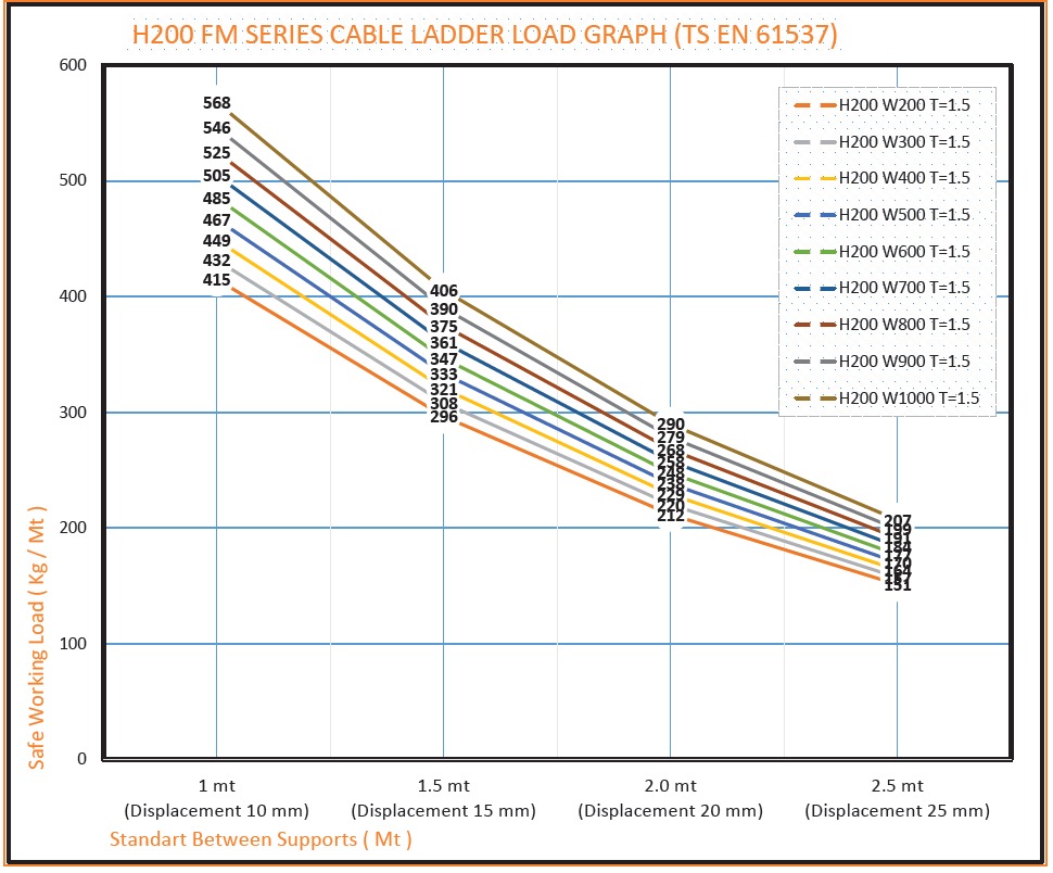 Fm Tipi Kablo Merdivenin yapısı, kablonun uzun mesafelerde döşenmesi sırasında yüksek yükleri taşıyabilmesini sağlar. Ayrıca, kanal yüksek titreşim direncine, bükülmeye karşı dayanıklılığa sahiptir ve 9 şiddetine kadar deprem dayanıklılığı gereksinimlerini karşılar.