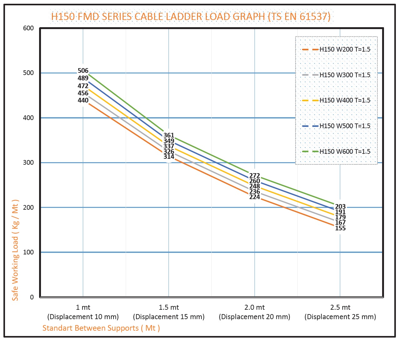 FMD Tipi Kablo Merdivenin yapısı, kablonun uzun mesafelerde döşenmesi sırasında yüksek yükleri taşıyabilmesini sağlar. Ayrıca, kanal yüksek titreşim direncine, bükülmeye karşı dayanıklılığa sahiptir ve 9 şiddetine kadar deprem dayanıklılığı gereksinimlerini karşılar.