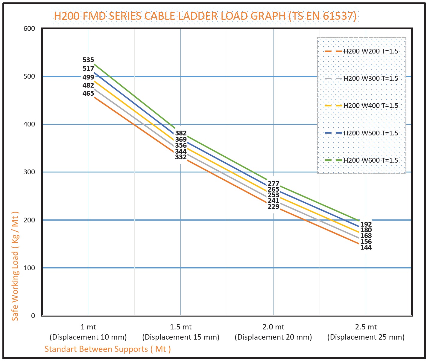 FMD Tipi Kablo Merdivenin yapısı, kablonun uzun mesafelerde döşenmesi sırasında yüksek yükleri taşıyabilmesini sağlar. Ayrıca, kanal yüksek titreşim direncine, bükülmeye karşı dayanıklılığa sahiptir ve 9 şiddetine kadar deprem dayanıklılığı gereksinimlerini karşılar.